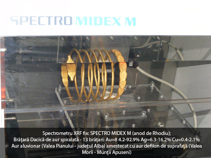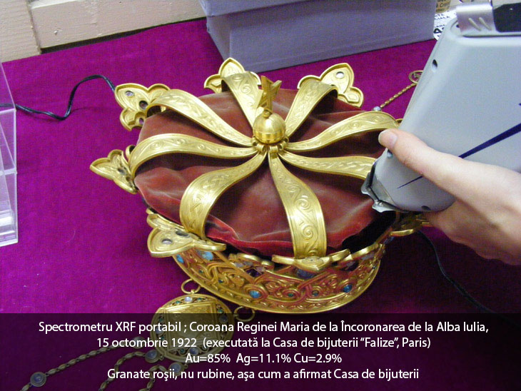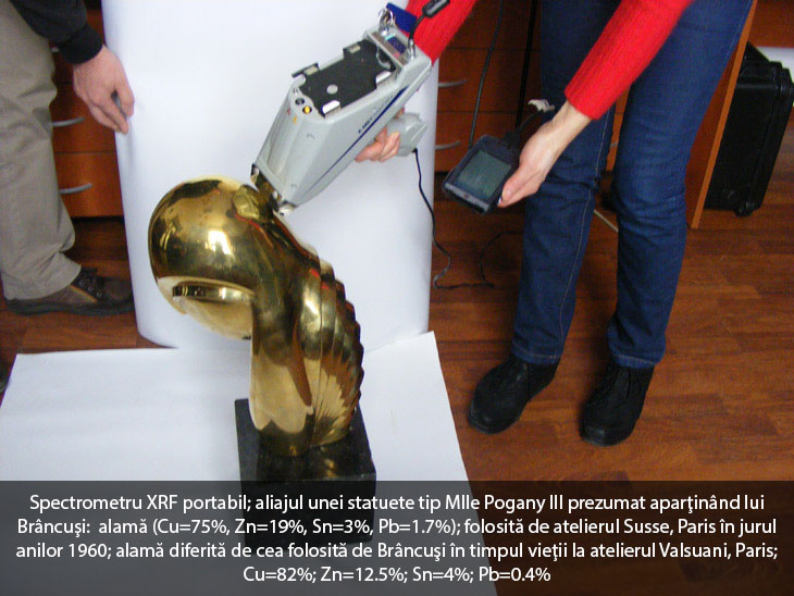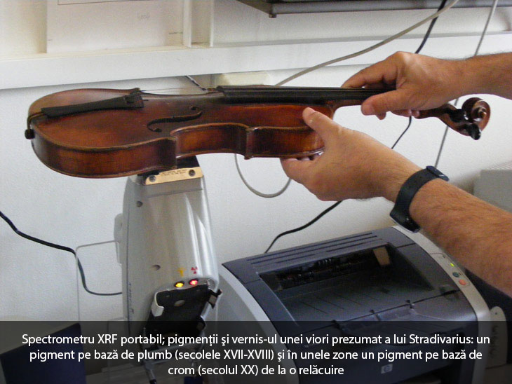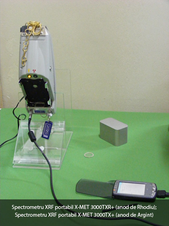 • Fluorescenţă de Raze X (XRF) folosind spectrometre fixe (analize elementale în laborator) şi portabile (analize in situ - direct în muzee, galerii, colecţii); elemente analizate: de la potasiu la uraniu; cantitate minimă detectată: 300-500 ppm (părţi per milion); suprafaţă analizată: 30 mm diametru; adâncime analizată: 30-60 microni în funcţie de material