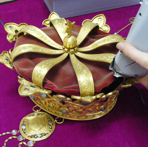 - caracterizarea structurii moleculare şi a modificărilor chimice suferite în urma tratamentului de salvare prin iradiere cu radiaţii ionizante gamma a lemnului policromatic, a arhivelor, a bunurilor textile şi de piele;